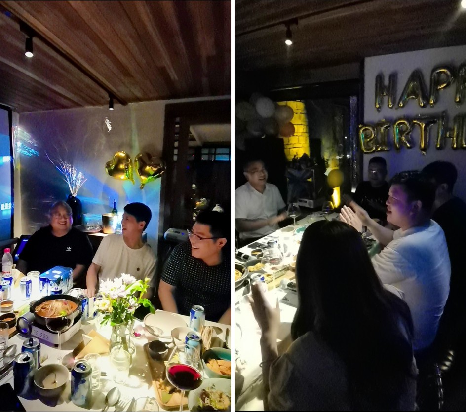 在欣賞完行政管理中心精心準(zhǔn)備的壽星風(fēng)采短視頻后,家人們開始享用美味的西餐,過程中燭光搖曳,大家載歌載舞,歡聲笑語不斷。