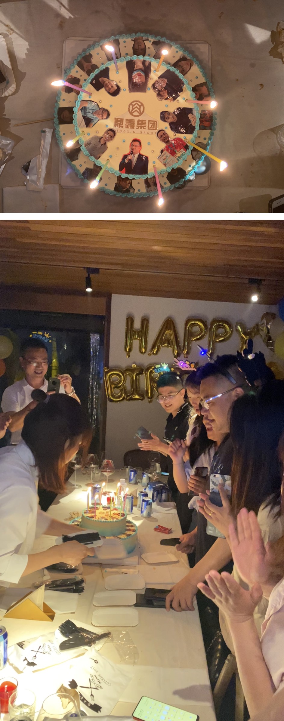 一個蛋糕象征著一個團(tuán)結(jié)的集體,一支支閃亮的蠟燭象征著一顆顆跳動的心。印著20多位壽星頭像的蛋糕擺在大家的面前,星光點點映出了家人們幸福的笑臉。伴著生日快樂的歌聲,壽星們開始許愿、吹蠟燭、吃蛋糕,享受著這美妙的一刻,之后在依依不舍中結(jié)束了這場生日會。