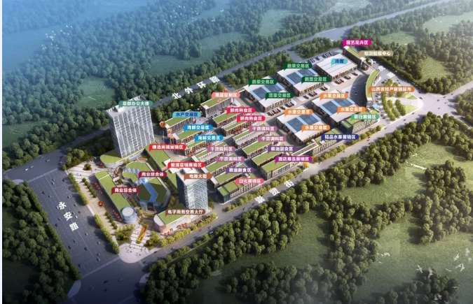 孝義農產品大市場位于城市主干道永安路與崇賢街交匯處,項目總投資10億元,占地面積約220畝,總建筑面積約17萬㎡,涵蓋了農產品交易區(qū)、農特優(yōu)展銷區(qū)、商務辦公區(qū)、倉儲加工區(qū)、冷鏈物流區(qū)、配套服務區(qū)六大功能區(qū)。項目建成后,將成為集農產品展覽交易、電子商務、電子結算、加工配送、凈菜加工、冷鏈物流、質量檢測、信息發(fā)布、創(chuàng)業(yè)孵化、金融服務、休閑娛樂等功能為一體的現代化大型綜合服務平臺。