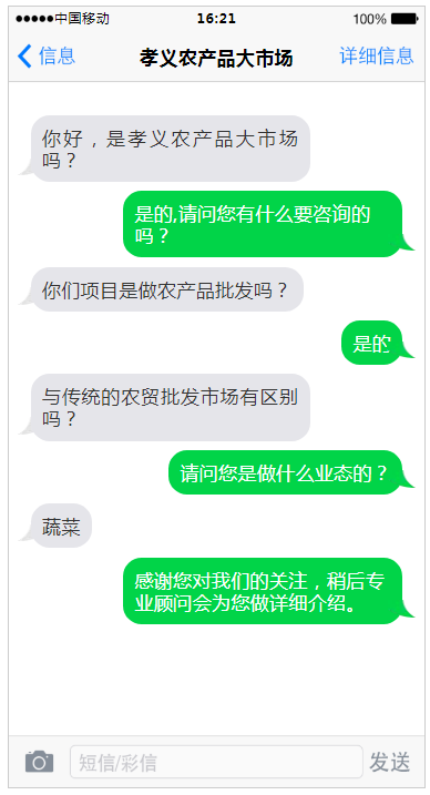 孝義農(nóng)產(chǎn)品大市場可以實現(xiàn)線上線下相結(jié)合,在源頭,建立龐大的遍布全國的產(chǎn)地供應(yīng)網(wǎng)絡(luò),實現(xiàn)農(nóng)產(chǎn)品供給的無阻力;在銷售下游環(huán)節(jié),形成農(nóng)批采購忠實用戶群,其次互聯(lián)網(wǎng)信息化,讓每件商品有自己的“身份證”,在生產(chǎn)、運輸、進場和交易等全過程執(zhí)行溯源碼制度,如果產(chǎn)品有問題,即可憑號追溯其來源產(chǎn)地等信息。