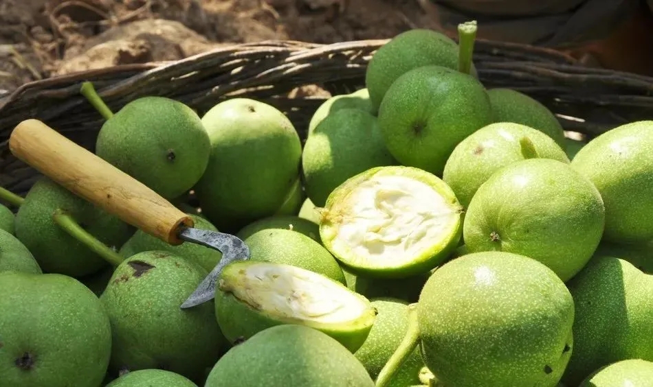 王教授詳細(xì)介紹了新型優(yōu)質(zhì)核桃品種的特性,并帶大家來(lái)到了核桃豐收區(qū)。一顆顆又圓又大的新鮮核桃整裝待發(fā),據(jù)王教授介紹,這些核桃經(jīng)過(guò)清洗、脫皮、晾曬、加工、包裝等,制作成核桃油、棗夾核桃、核桃仁堅(jiān)果等產(chǎn)品再銷售。
