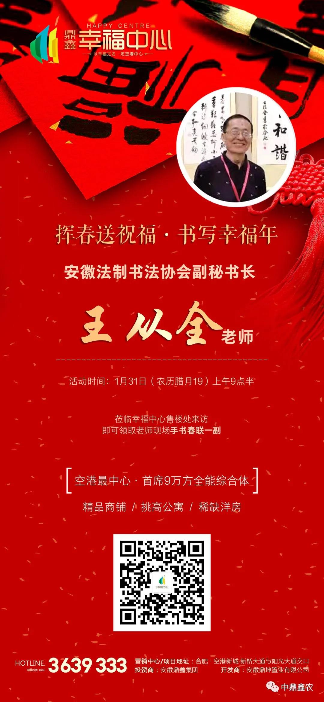 2021年1月31日,農(nóng)歷臘月19日,牛年春節(jié)即將來(lái)臨之際,幸福中心項(xiàng)目有幸邀約到安徽法制書法協(xié)會(huì)副秘書長(zhǎng)“王從全”老師蒞臨售樓中心,為空港人們送上新春祝福!