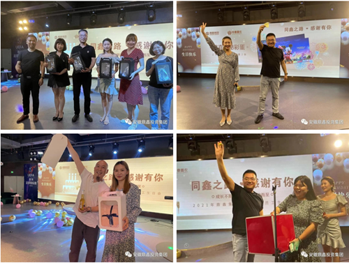 生日會設置了抽獎環(huán)節(jié),精美的禮品陸續(xù)中出。最終由董事長親自抽出迪士尼雙人游大獎!