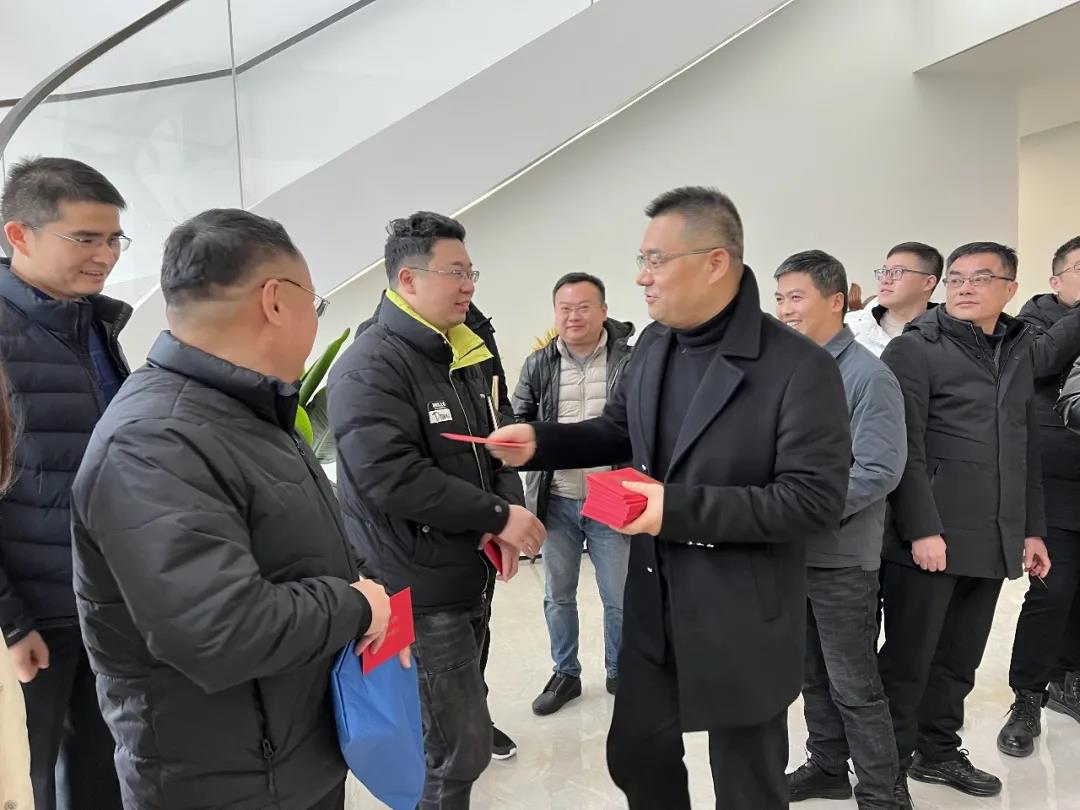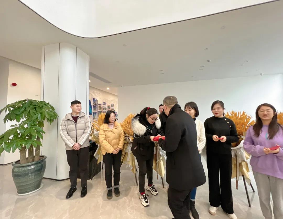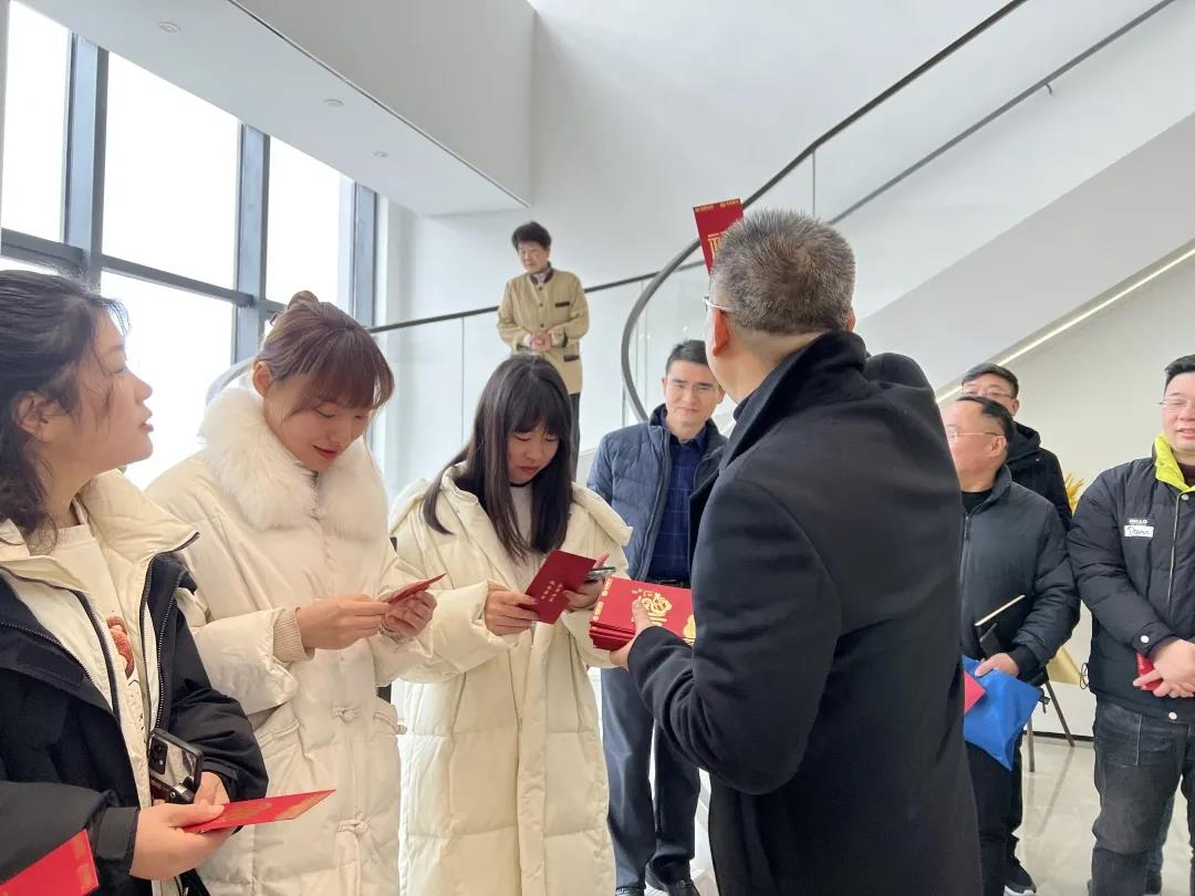 虎年開工日,全體鼎鑫人準(zhǔn)時到崗,伴隨著此起彼伏的新年祝福,全體員工以“元?dú)鉂M滿”的姿態(tài)進(jìn)入工作狀態(tài),董事長鄭景利親自為每一位員工送上開工紅包,寓意新的一年紅紅火火,萬事順利,一個個紅彤彤的紅包,寄托了董事長對每個人的美好祝福和殷切希望。