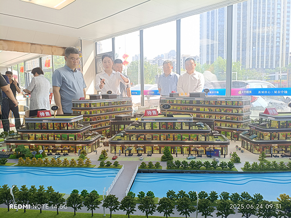 隨后又來到項(xiàng)目沙盤,講解員為一行人進(jìn)行詳細(xì)闡述,鼎鑫?幸福滙作為集現(xiàn)代化智慧農(nóng)貿(mào)市場(chǎng)與新生活購物中心于一體的商業(yè)綜合體,其創(chuàng)新的商業(yè)模式與先進(jìn)的智慧化運(yùn)營理念,吸引了領(lǐng)導(dǎo)們的高度關(guān)注。從智慧農(nóng)貿(mào)市場(chǎng)的智能溯源系統(tǒng),到新生活購物中心的多元業(yè)態(tài)布局,每一處細(xì)節(jié)都展現(xiàn)著項(xiàng)目的獨(dú)特魅力與前瞻性。