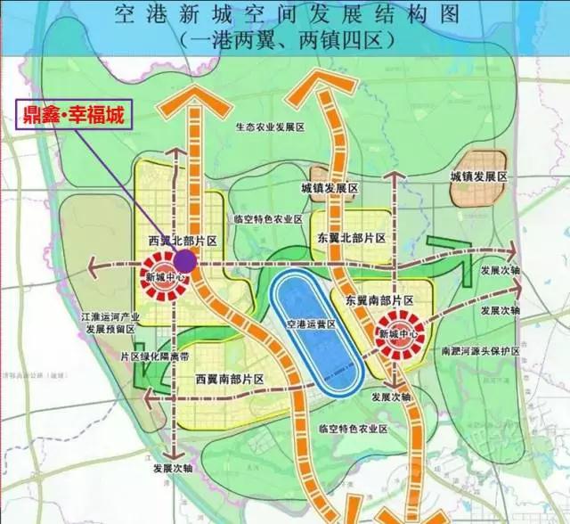 幸福城正好處于政府規(guī)劃的空港西翼“新城中心”,扼守空