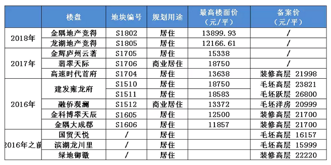 房價越來越高。由于2016年之前的三塊地,拿地價格較低,所以備案價格也都在20000元/平米以下。2016年之后出讓的土地,不論是裝修還是毛坯,無論是高層還是洋房,價格都已突破20000大關。跟樓面價一樣,房價漲上去就下不來了。