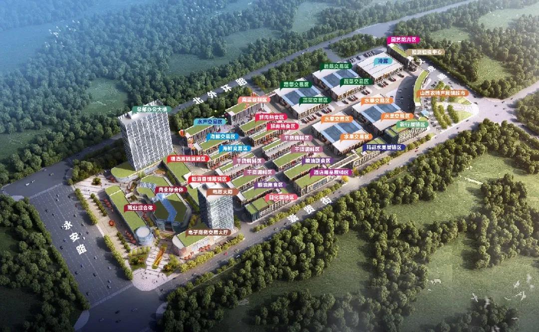項目總投資10億元,占地面積約220畝,涵蓋蔬菜、水果、糧油副食、干貨調料、海鮮水產、冷凍鮮肉、日雜百貨、酒店用品八大業(yè)態(tài);農特優(yōu)展銷區(qū)、商務辦公區(qū)、倉儲 工區(qū)、冷鏈物流區(qū)、配套服務區(qū)六大功能區(qū)。項目建成后,將成為集農產品展覽交易、電子商務、電子結算、加工配送、凈菜加工、冷鏈物流、質量檢測、信息發(fā)布、創(chuàng)業(yè)孵化、金融服務、休閑娛樂等功能為一體的現代化大型農批綜合服務平臺。