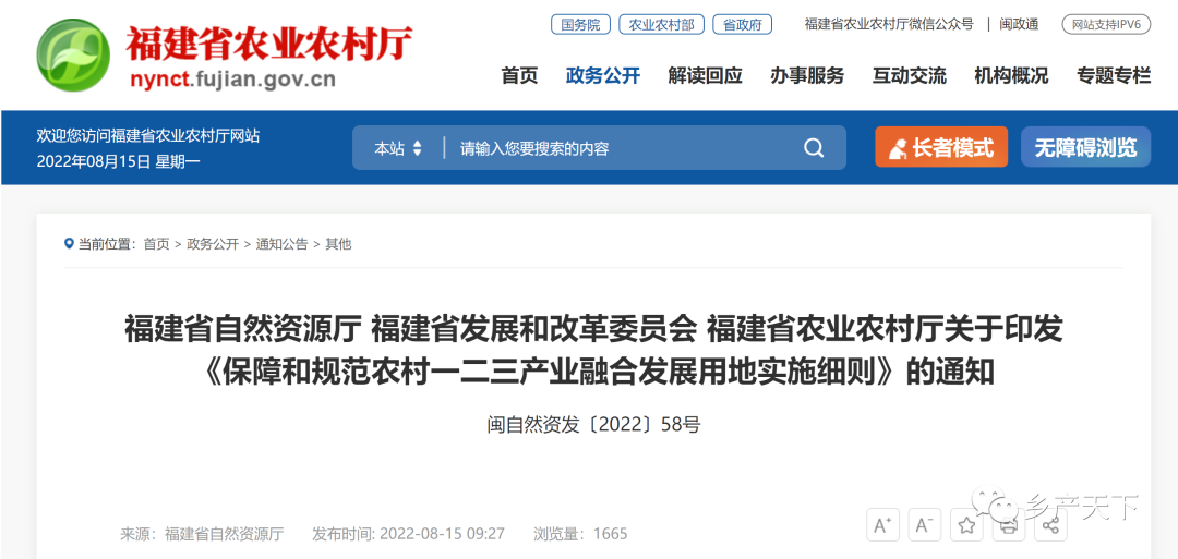 福建省自然資源廳 福建省發(fā)展和改革委員會 福建省農(nóng)業(yè)農(nóng)村廳關(guān)于印發(fā)《保障和規(guī)范農(nóng)村一二三產(chǎn)業(yè)融合發(fā)展用地實施細則》的通知