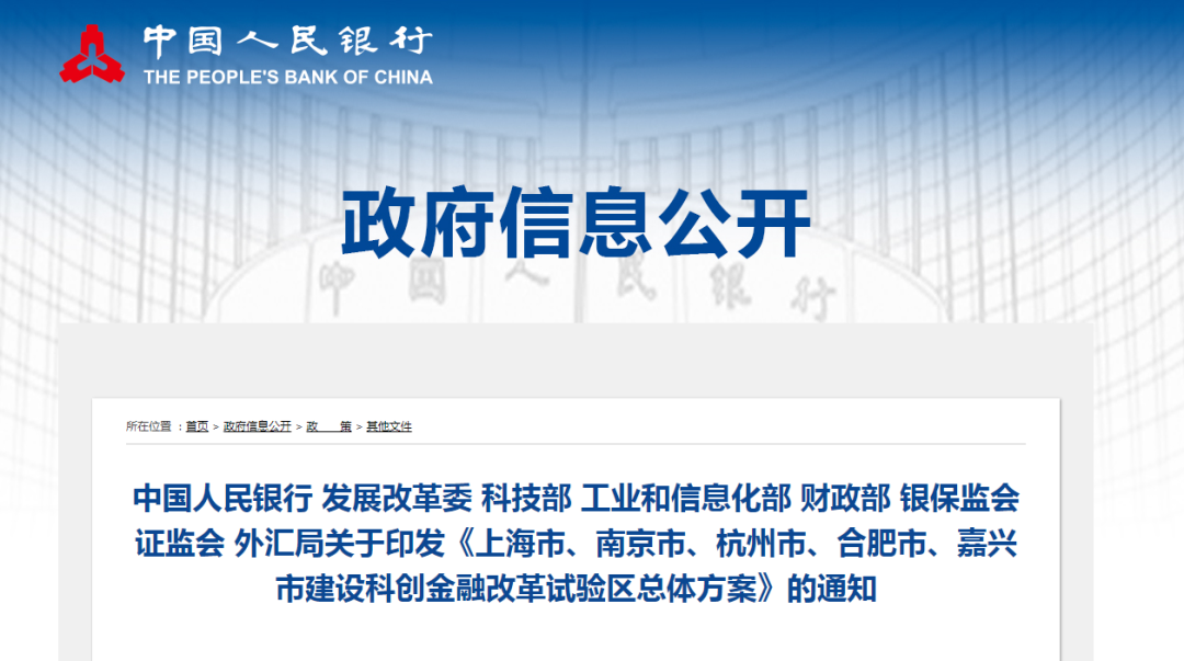 為深入貫徹習(xí)近平總書記關(guān)于長三角一體化發(fā)展和創(chuàng)新體系建設(shè)的重要指示和講話精神,認(rèn)真落實(shí)黨中央、國務(wù)院決策部署,按照《長江三角洲區(qū)域一體化發(fā)展規(guī)劃綱要》和《國家創(chuàng)新驅(qū)動發(fā)展戰(zhàn)略綱要》要求,經(jīng)國務(wù)院同意,2022年11月18日,人民銀行、發(fā)展改革委、科技部、工業(yè)和信息化部、財政部、銀保監(jiān)會、證監(jiān)會、外匯局印發(fā)《上海市、南京市、杭州市、合肥市、嘉興市建設(shè)科創(chuàng)金融改革試驗(yàn)區(qū)總體方案》