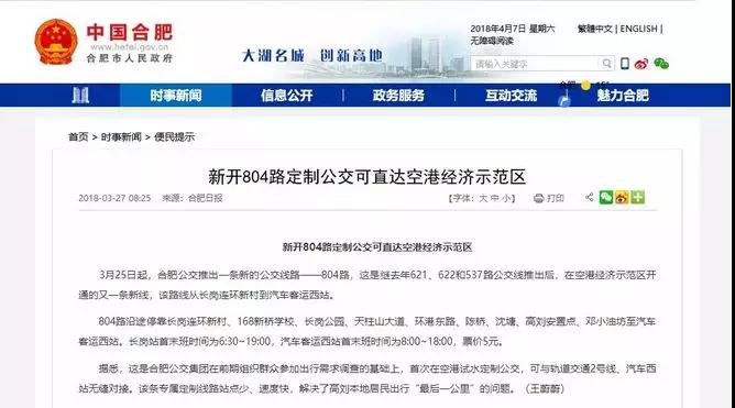 3月25日起,合肥公交推出一條新的公交線路——804路。這是繼去年621、622和537路公交線推出后,在空港經(jīng)濟(jì)示范區(qū)開(kāi)通的又一條新線,該路線從長(zhǎng)崗連環(huán)新村到汽車(chē)客運(yùn)西站。