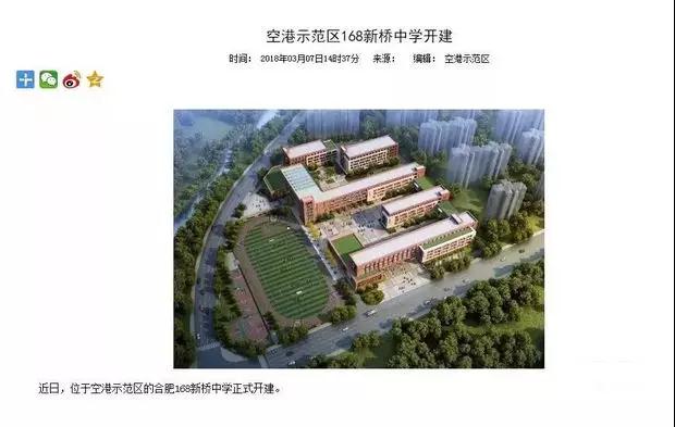 03、投資約2億元的合肥一六八新橋?qū)W校寄宿制中學(xué)部,已于3月份開(kāi)工建設(shè),規(guī)劃36班,預(yù)計(jì)2019年5月份建成投用。