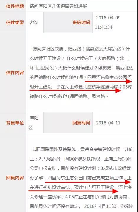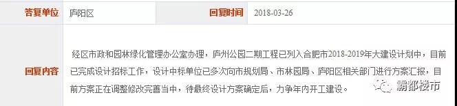 3月底,有網(wǎng)友在市長信箱咨詢廬州公園二期建設(shè)事宜,官方具體回復(fù)如下: